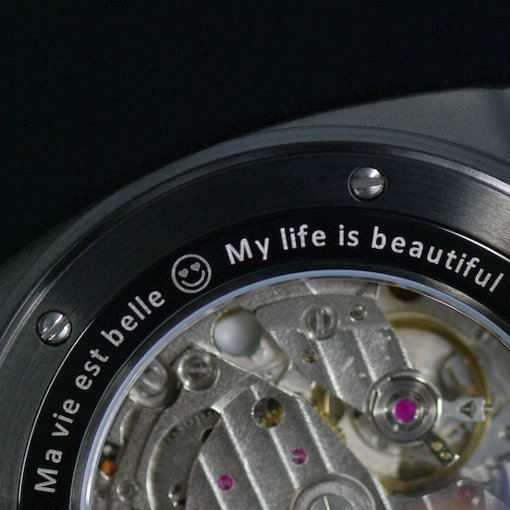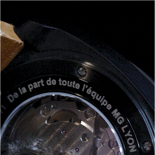 Une gravure au dos de la montre : témoignage d’affection, reconnaissance d’un acte méritoire, humoristique, temporel... Deux seules limites : le nombre de caractères et un peu de bon goût !